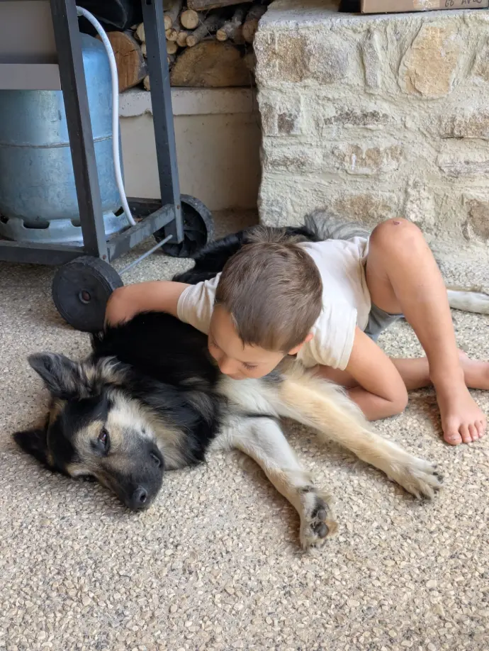 Vos animaux sont les bienvenus aux Poneys Fringants. Veuillez toutefois noter que nous avons nous-même un chien. Umbo a toujours vécu avec des enfants en bas âge, il accepte volontiers les caresses des plus petits. Il est très sociable avec ses congénères.
