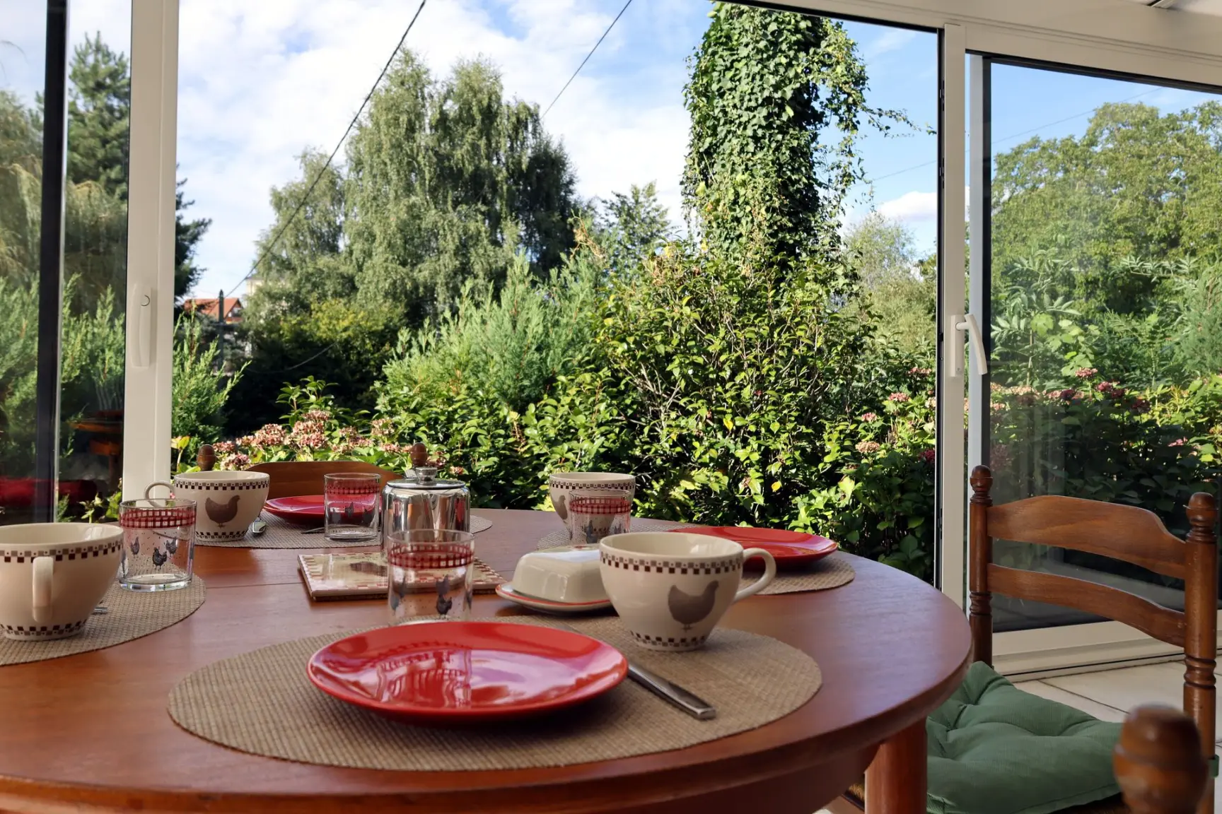 Vous dégusterez un petit déjeuner sucré ou salé maison et local dans notre véranda en profitant de la vue sur le pré des moutons et des chevaux.